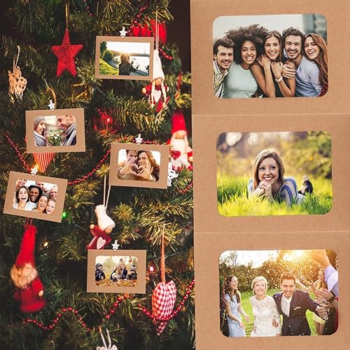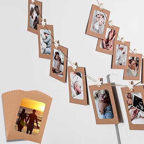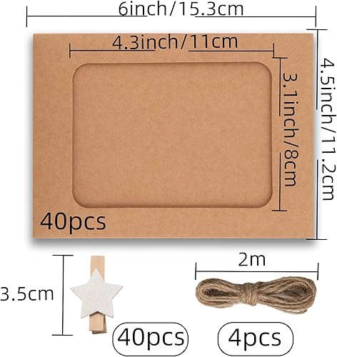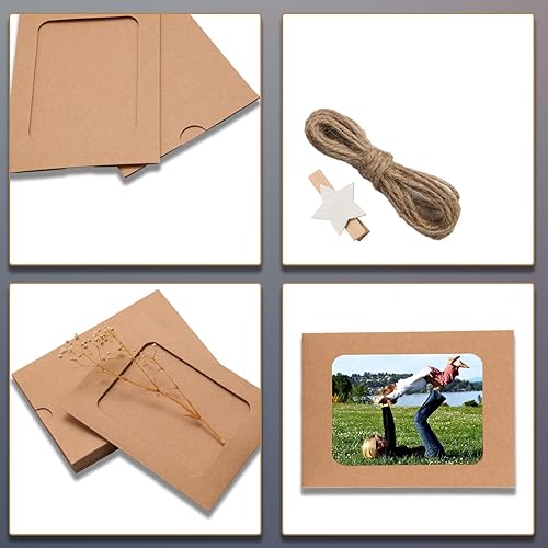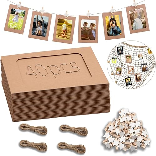 Ziamzra 40 Pièces Cadre Photo Carton 10x15 cm Cadre Photo en Papier Marron avec 40 Pièces Clips et 8m Corde de Chanvre pour Famille Amis Fête Anniversaire Mariage Noel Décoration de Murale DIY