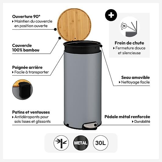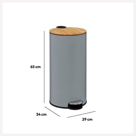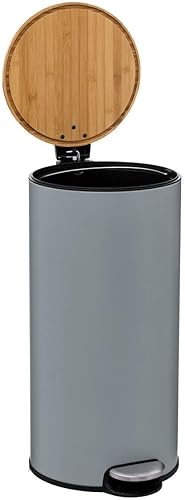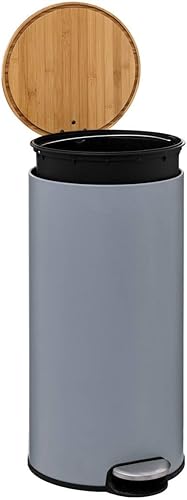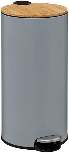 5 five simply smart Poubelle avec couvercle en bambou Gris 30 l