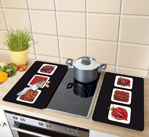 WENKO Protection Plaque de Cuisson, «Fancy», Plaque de Protection Induction, gazinière, vitrocéramique, Verre trempé, Lot de 2, 30x52 cm
