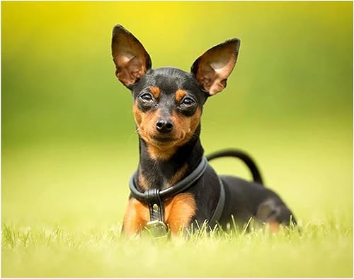 5D Diamond Painting by Number Kits for Adults Chien Pinscher DIY Plein Forage Diamant Peinture Strass Broderie Point De Croix Arts Artisanat pour La Maison Décoration Murale 25x30cm/10x12inch Round