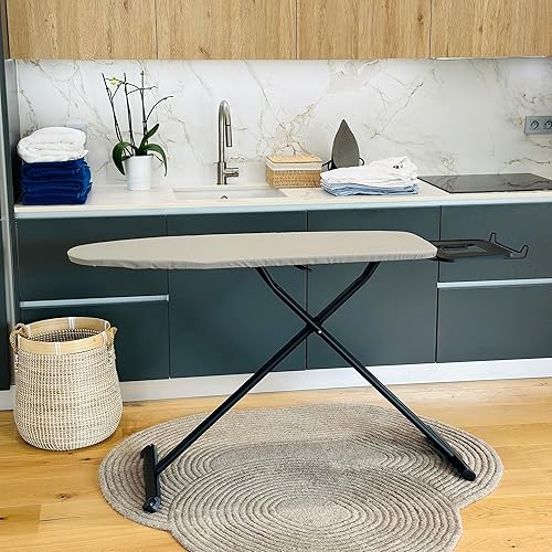 Table à repasser ultra légère pliable LICHT en aluminium 125x40 H92cm avec repose fer et repose centrale vapeur et roulette