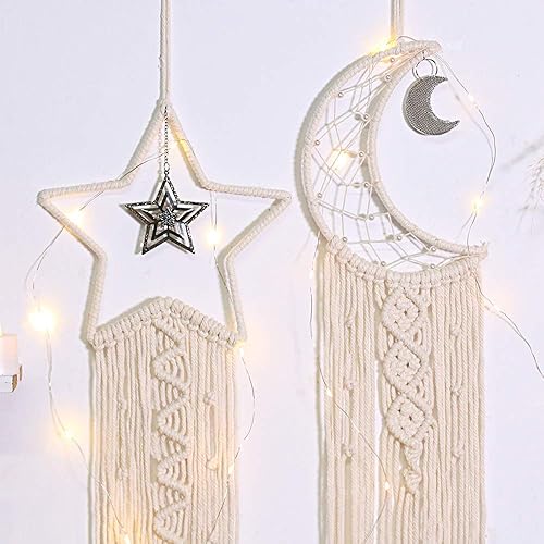 Shiwaki 2 pcs Macramé Tenture Murale étoile Lune Dream Catcher Tapisserie Bohème Décor à La Maison Tissé à La Main Décoration pour Chambre Maison De Mariage Ornement Artisanat Cadeau (Beige)