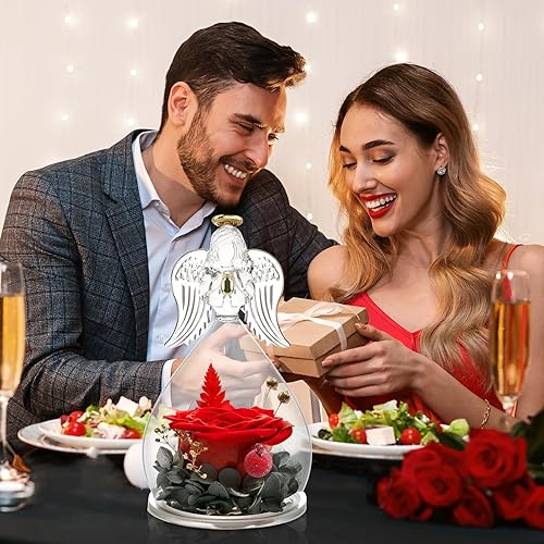 Purpledi Rose éternelle dans un pot en verre Angel dans un dôme en verre - Fleurs conservées en forme d'ange - Cadeau d'anniversaire