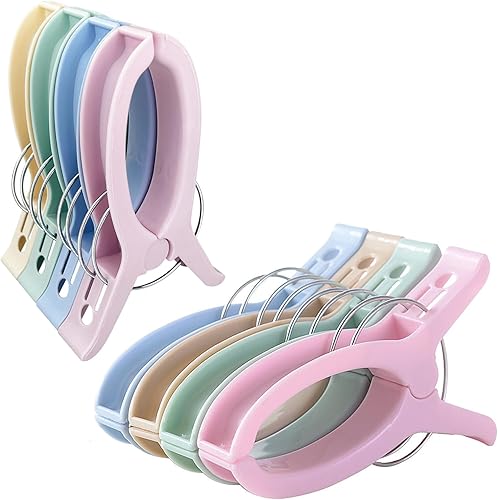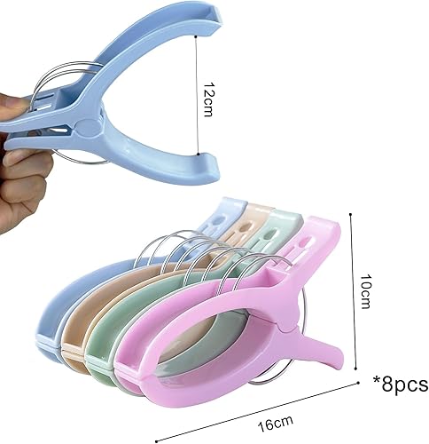 Gentpovth 8 Pièces Ultra-Grip Epingles à Linge, A Linge Antiglissantes, Grandes Pinces à Linge colorées pour Serviette de Plage, Pinces Coupe Vent, pour Vêtements, la Maison, Lessive, Serviettes