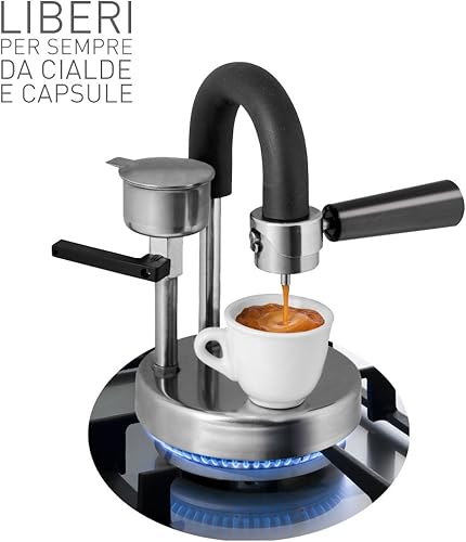 KAMIRA cafetière pour l'expresso crémeux sur la cuisinière à la maison! En acier inoxydable, gris/noir, 21x14 cm.