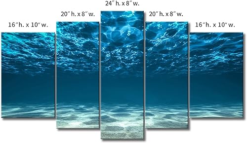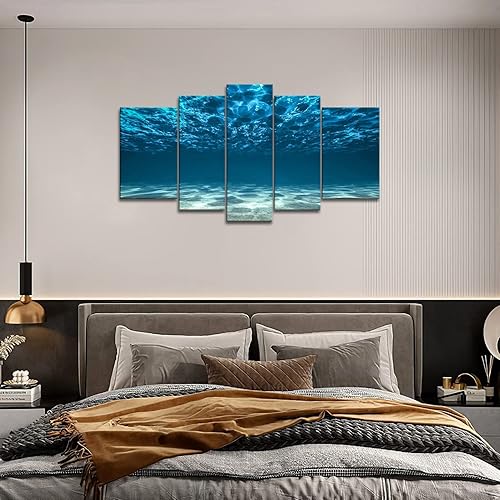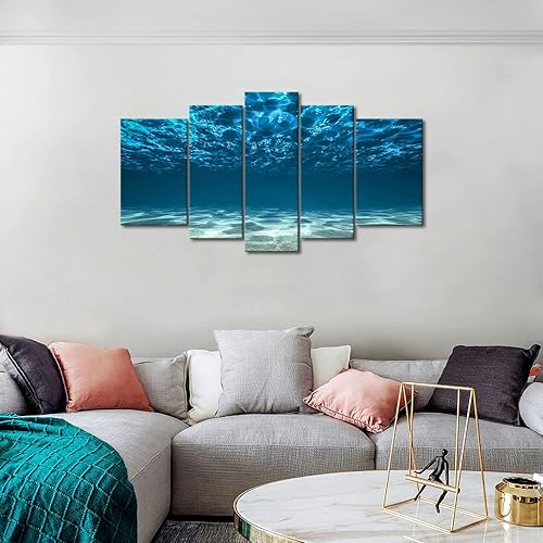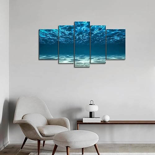 5 Panneau Bleu Océan Bas Vue sous Surface Peinture Murale d'art l'image imprimée sur Toile Paysage Marin Photos d'œuvres d'art pour Le Bureau à Domicile Décoration Moderne