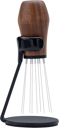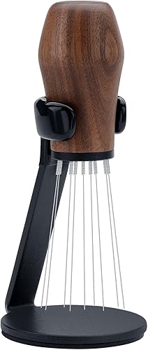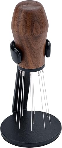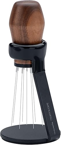 Normcore WDT Outil de distribution avec support V3, technique de distribution Weiss, agitateur à expresso à aiguilles 9 broches, manche en bois de noyer américain