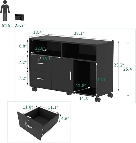 YITAHOME Classeur en Bois, classeur latéral Mobile à 2 tiroirs, Meuble de Rangement, Support d'imprimante avec Serrure et étagères de Rangement Ouvertes