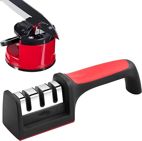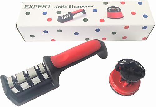 EXPERT – Lot de 2 Aiguiseurs de Couteaux 3 Étapes – Affûteurs Manuels Professionnels pour Couteaux Cuisine Inox & Céramique – Base Antidérapante, Poignée Ergonomique, Affûtage Sécurisé