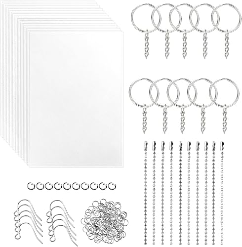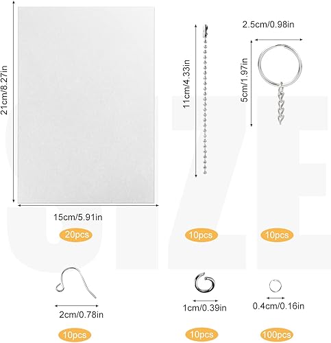 QIQN Feuille Plastique Fou 160 Pièces Papier Fou Magique Dingue Kit pour DIY Artisanat L'Impression Le Bricolage à La Main Les Insignes et Les Bijoux Les Pendentifs Porte-Clés