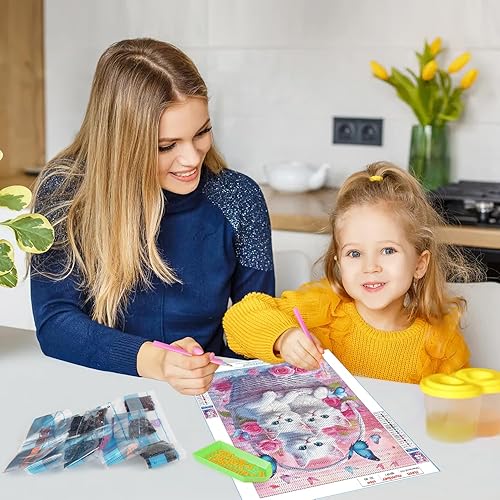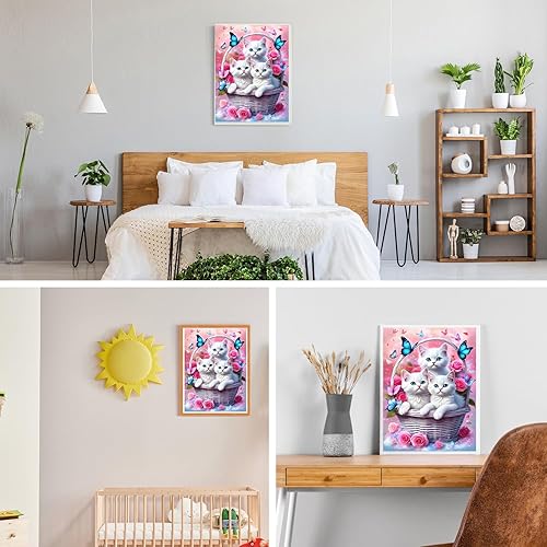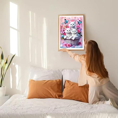GDYEEH 5D Chaton Blanc Peinture Diamant Painting Kit, DIY Papillon Art du Diamant Complet Kits, Fleurs Diamond Art Kits Strass Point de Croix Painting pour Adultes Débutants Maison Décor 30x40 cm