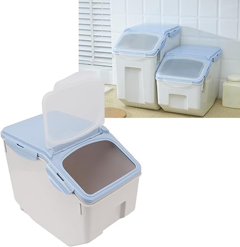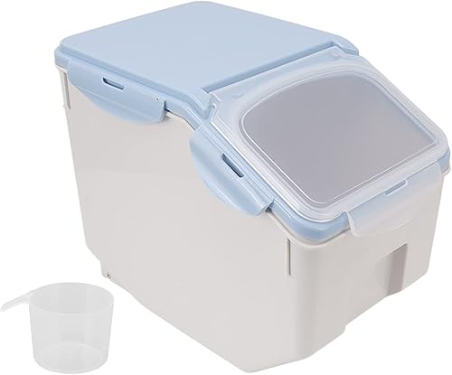 Récipient à Riz, écologique, Résistant aux Hautes Températures, Peu Encombrant, Récipient Alimentaire Hermétique en Plastique avec Tasse à Haricots (Bleu 15KG)