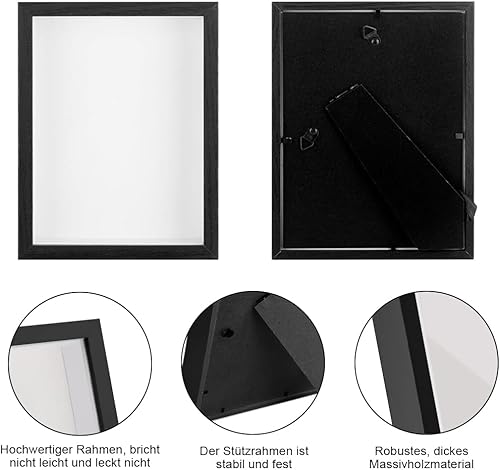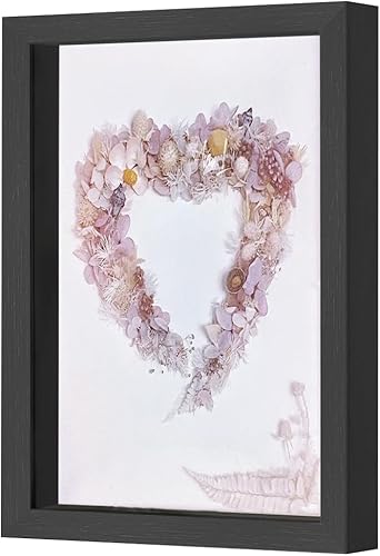 Cadre photo 3D à remplir - 20 x 25 x 3 cm - En bois - Profondeur : 3 cm - Pour objets - Fleurs - Cadeau de mariage ou souvenirs - Noir