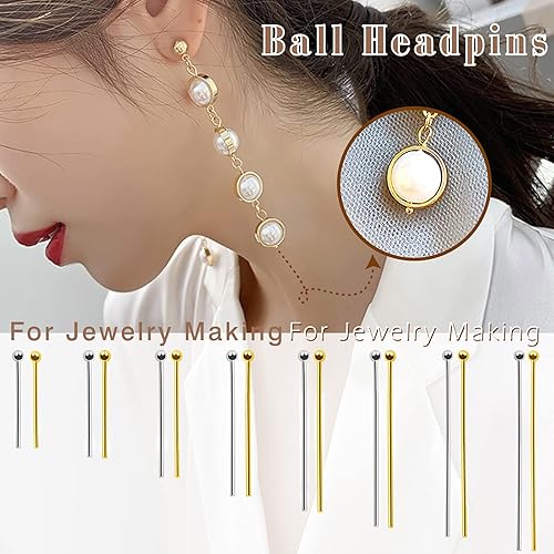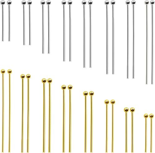 TOAOB Lot de 800 Clous à Tête de Boule en Laiton 8 Tailles Broches Droites Rondes 18 mm 20 mm 25 mm 30 mm 35 mm 40 mm 45 mm 50 mm pour Bricolage Colliers Boucles d'oreilles Bijoux Or et Argent Ton