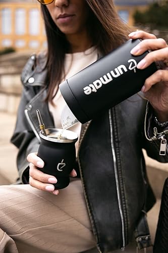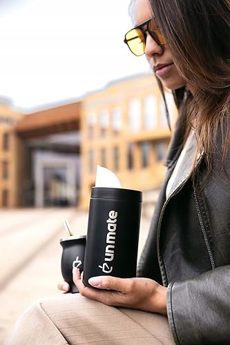 UN MATE Yerbera – Boîte de Rangement Yerba Mate avec Distributeur, Acier Inoxydable Noir, Capacité 250g, Hermétique et Durable