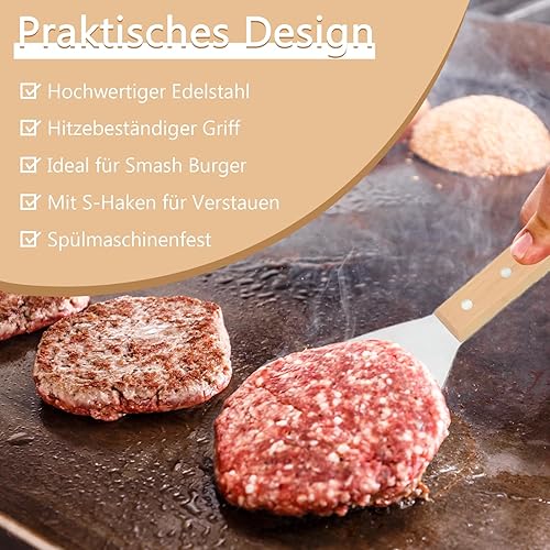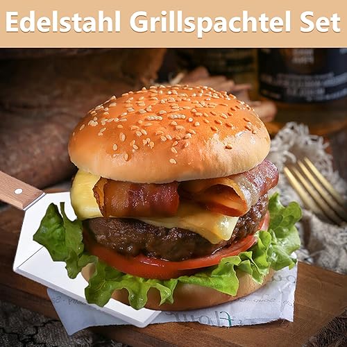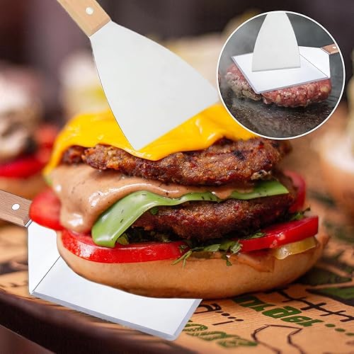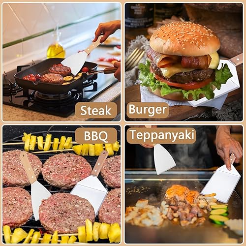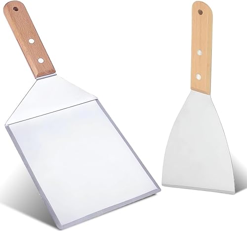 OWLMATE 2 Pièces Spatule Cuisine Inox Spatule Plancha Spatule Pizza Spatule Inox Spatule Barbecue pour Teppanyaki Gril Barbecue Hamburgers Crêpes