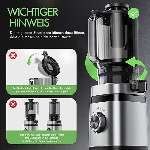 Extracteur de Jus, Slow Juicer, Centrifugeuse Extracteur de jus,Extracteurs de Jus Légumes et Fruits Testé | Moteur DC Ultrasilencieux 350W | Ouverture de 110MM | 2 Tasses | Presse Agrumes Électrique