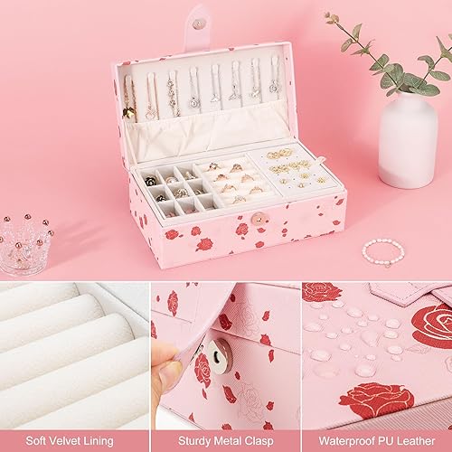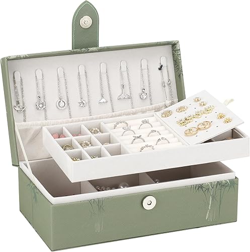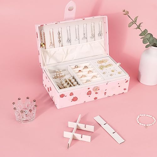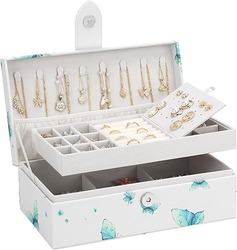 DesignSter Boite a Bijoux, Boîte à bijoux personnalisée pour Femmes Filles, Rangement Bijoux à 2 Niveaux, Coffret à Bijoux en PU pour Bagues, Bracelets, Colliers, Papillon