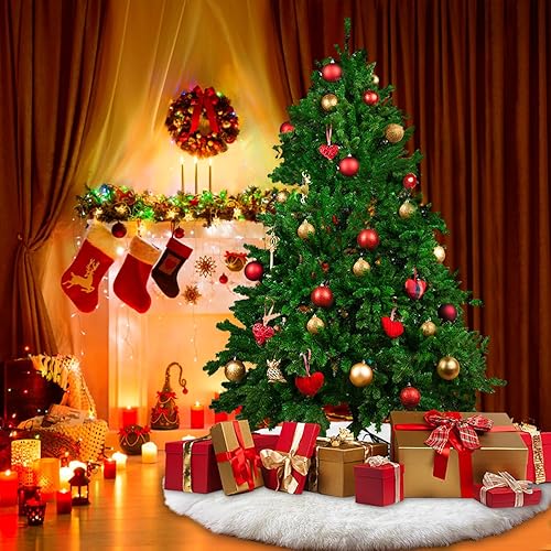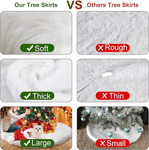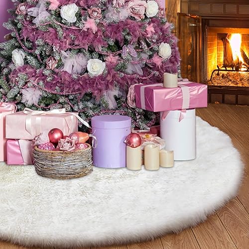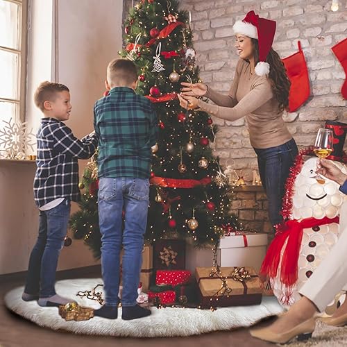 TTCOTOKE Jupe de Sapin de Noël, 2023 Tapis Sapin Noël 90cm Blanc Peluche Jupe Arbre de Noël, Tapis en Fausse Fourrure, Décorations Tapis de Sapin pour Arbres de Noël Décorations de Fêtes de Noël