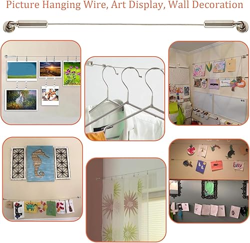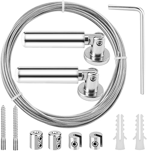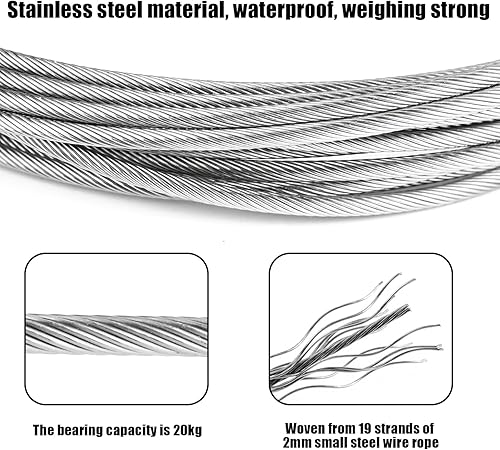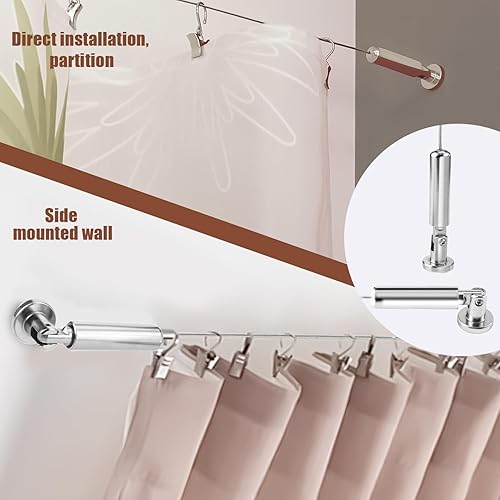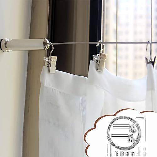 Câble en Acier Inoxydable 5m – Kit Tringle à Rideaux avec Fixation pour Rideau de Douche | Câble pour Rideau Antirouille + Accessoires Inclus | Compatible Rideaux Lourds