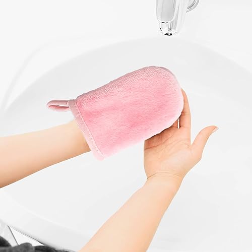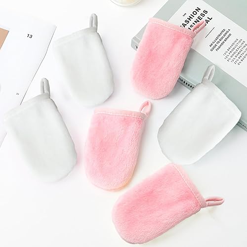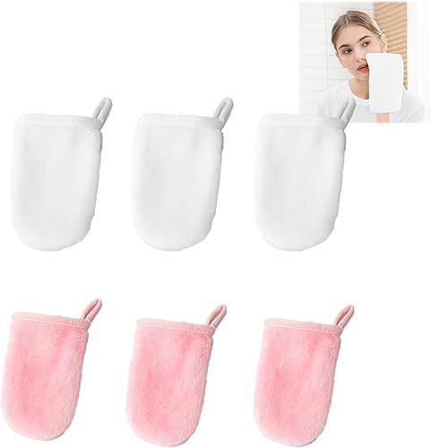 Jimkply Lot de 6 gants de toilette en tissu éponge, gants de toilette réutilisables, gants de nettoyage du visage, gants respectueux de l'environnement, 11 x 9 cm