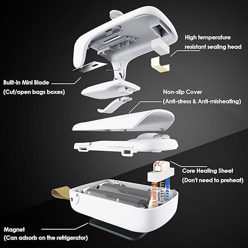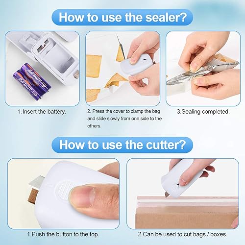 XIMU Mini Scelleur, 2 en 1 Mini Scellant pour Sacs Bag Sealer Scelleuse De Sacs avec Cutter, Scelleur Thermique, Mini Scelleur Portatif, Scelleur de Sac pour Plastique (Batterie Incluse) (Blanc)