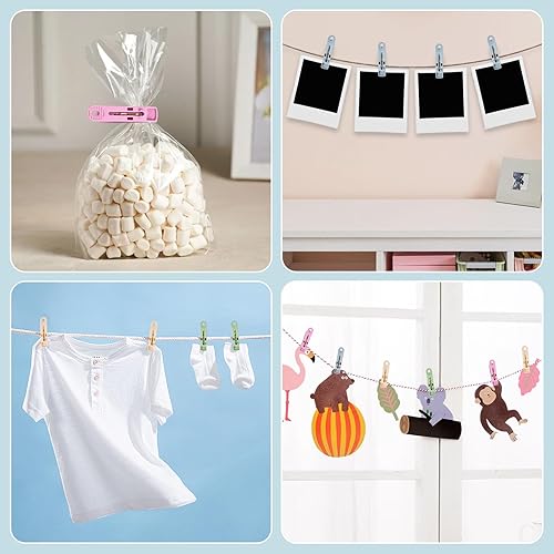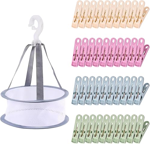 40 Pièces Pince à Linge avec Panier (Beige*10, Rose*10, Bleu*10, Vert Foncé*10)