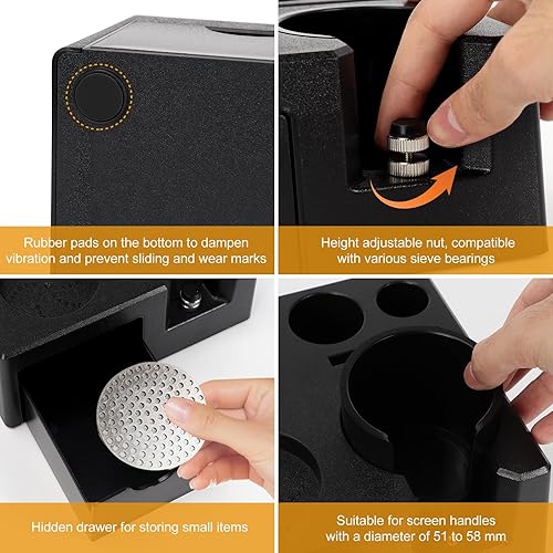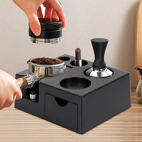 TOWEBOORY Café Tamper Station 51-58mm Réglable, Station de Tassage Café Station, Station Café pour Accessoires Barista, avec Pieds Antidérapants pour Machines à Café pour Barista, Café, Maison