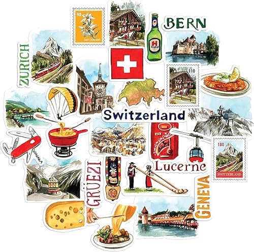 Navy Peony Superbes autocollants de voyage en Suisse (31pcs) — Pour scrapbooks, journaux