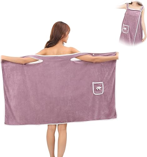 Yeria Serviette de bain à bretelles pour femme, douce, moelleuse et très absorbante, avec poche, épaisse, séchage rapide, plage et spa