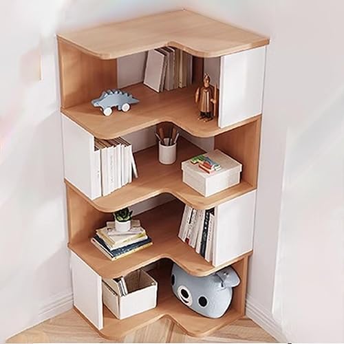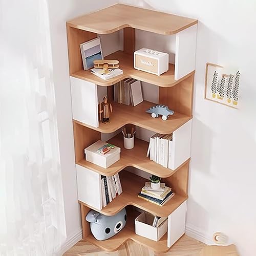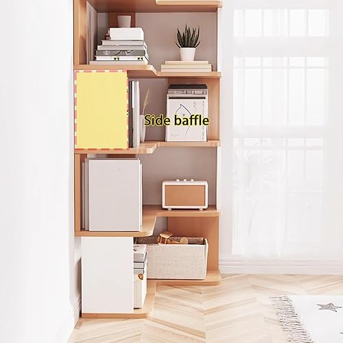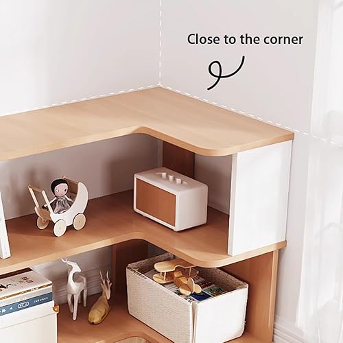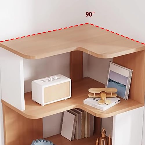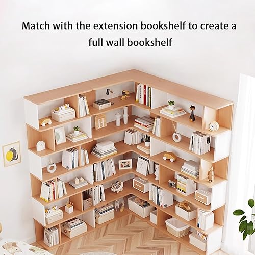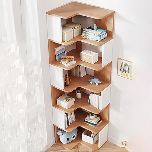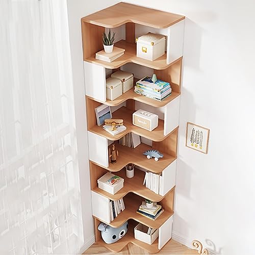 YQMHEZ Bibliothèque d'angle en Bois, Étagère D'affichage, Étagère de Rangement Autonome, Bibliothèque d'angle, Étagères pour La Décoration du Salon, Blanc + Naturel(7-Tier: 223cm)