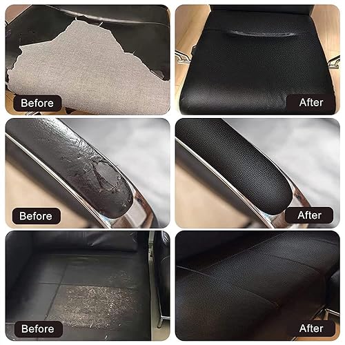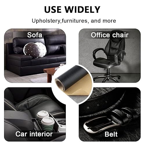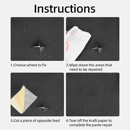 DAGORD Kit Reparation Cuir 6 Pièces Patch Cuir Auto-Adhésif 30 x 20cm Noir Reparation Cuir Autocollant Patch Réparation avec Ciseaux et Mètre à Ruban