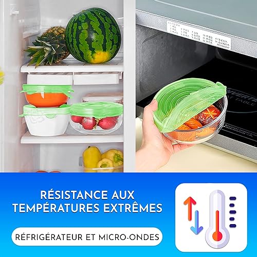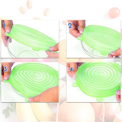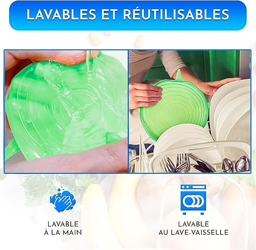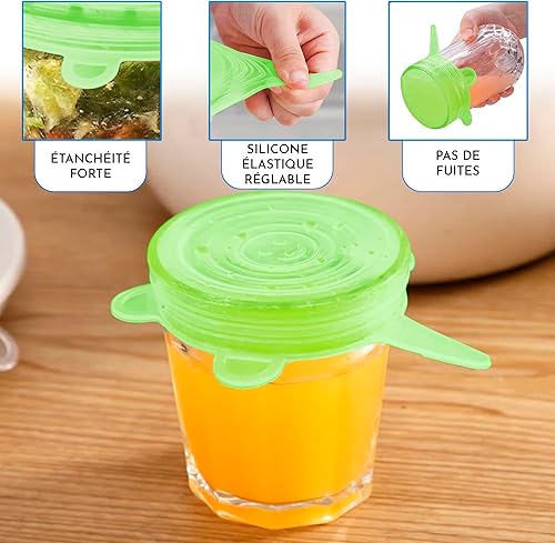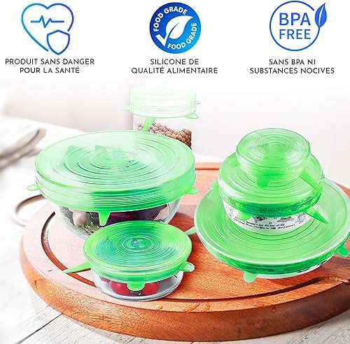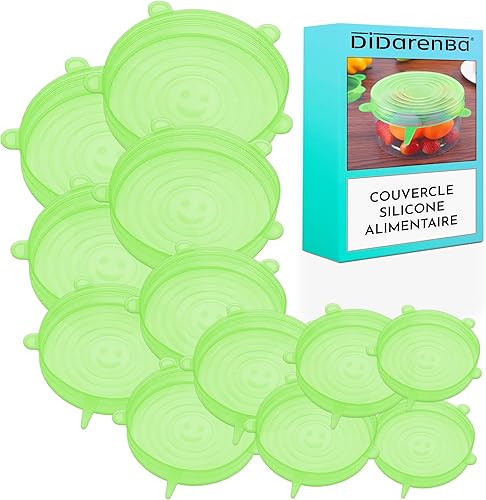 Couvercle silicone alimentaire 12 pieces differentes tailles extensible reutilisable lavable au lave-vaisselle couvercle boite de conserve vert