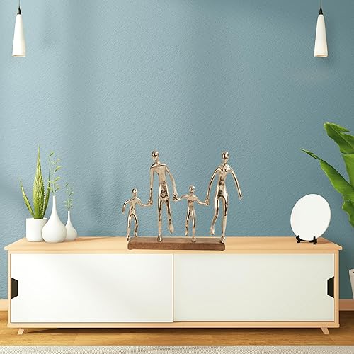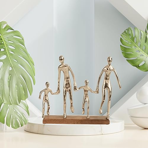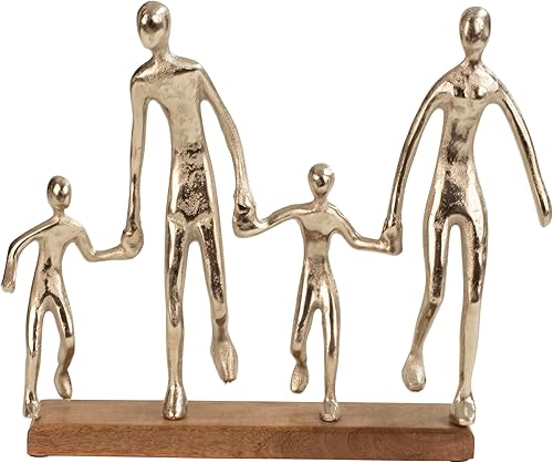 Lifestyle & More Sculpture moderne en forme de famille en métal sur socle en bois Argenté Largeur 38 cm Hauteur 31 cm