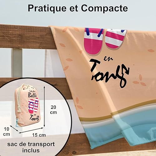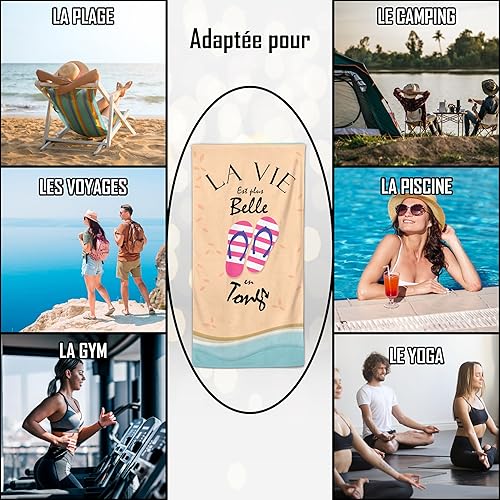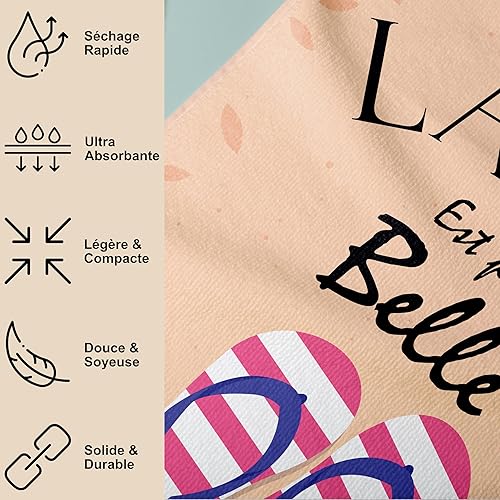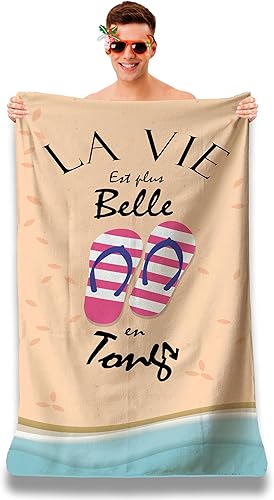 Serviette de Plage Microfibre Personnalisée avec Message Humoristique. Drap de Plage 160x80cm Ultra Absorbant, Séchage Rapide, Léger et Compact. Idée Cadeau Femme Homme Ado Anniversaire Noel