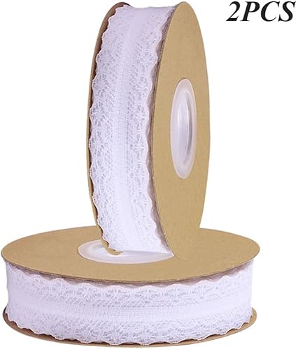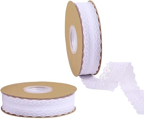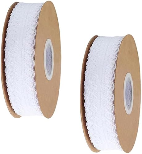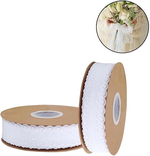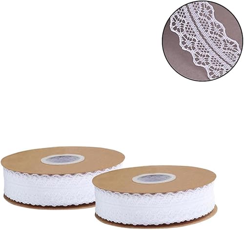 Zasiene Dentelle Vintage Floral Blanc - 2 Rouleaux de Ruban pour Mariage, Bordure Crochetée pour Décoration