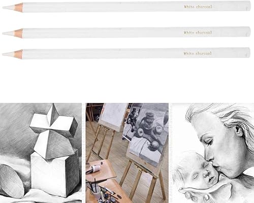 3Pcs Crayon Blanc Dessin, Fusain Dessin Crayons Croquis Surligner Crayon Stylo Fusain Blanc Croquis Crayon Peinture pour Dessin, Ombrage