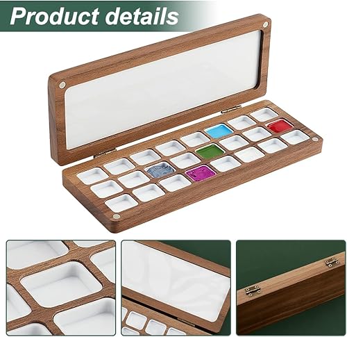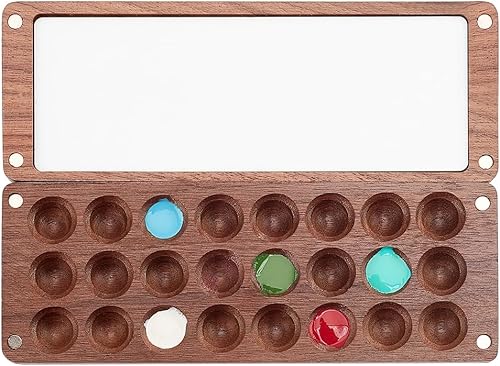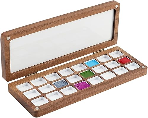 PH PandaHall Palette de Peinture Aquarelle Vide en Plateau de Mélange de Couleurs en Bois à 24 Grille avec Couvercle Boîte de Voyage pour Aquarelle Étui Durable pour Peintres Étudiants Adultes