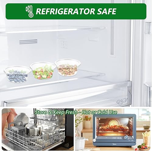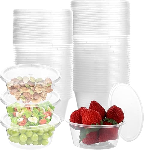 STARVAST Lot de 100 boîtes de conservation rondes avec couvercle - 200 ml - Anti-fuite - Petites boîtes avec couvercle pour récipients alimentaires, sauces, sauces, épices