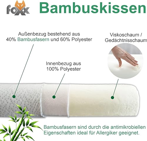 Foxx Oreiller orthopédique en bambou viscoélastique pour la nuque, convient aux personnes dormant sur le côté, sur le dos, 60 x 40 cm, en mousse viscoélastique, en mousse à mémoire de forme