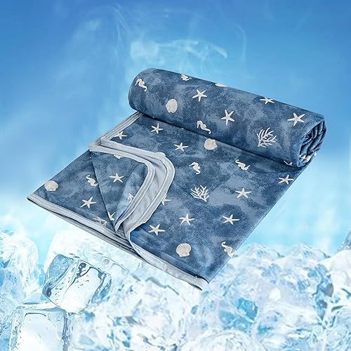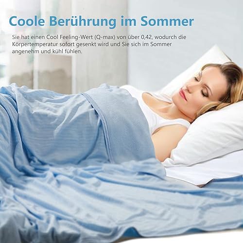 Couverture de Refroidissement Couverture de Refroidissement Légère en Polyester Couverture de Jet D'Été Respirante À Double Face (Bleu,150x200cm)