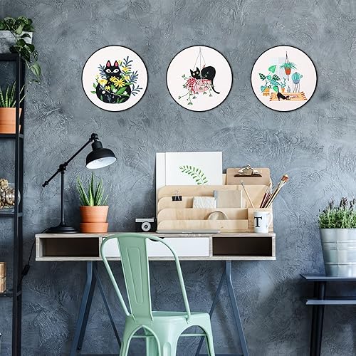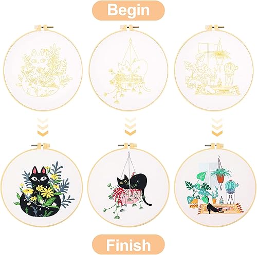 XiYee 3 Kit de Démarrage de Broderie, kit Fils à Broder Tissu Débutant Outil pour Adultes avec Cerceaux de Broderie (A)