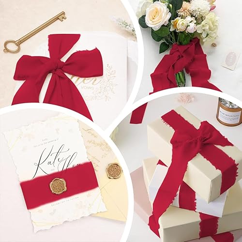 Mousseline de Soie Cadeau Ruban Rouge Mousseline de Soie Ruban Arc Ruban De Mariage Tissu Ruban 15 m x 30 mm