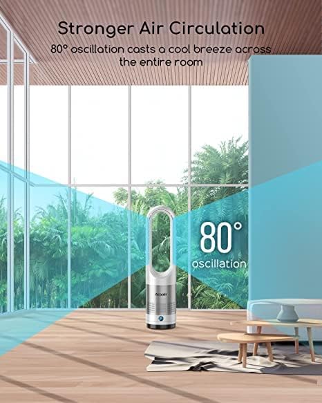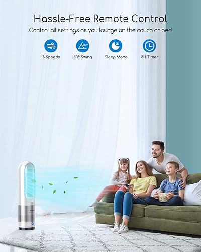 Ventilateur Colonne, Sécurité Sans Feuilles Ventilateur Tour, Oscillation à 80°, 8 Vitesses, Minuterie de 8 Heures, Affichage LED, Ventilateur Silencieux avec Télécommande pour la Maison et Le Bureau