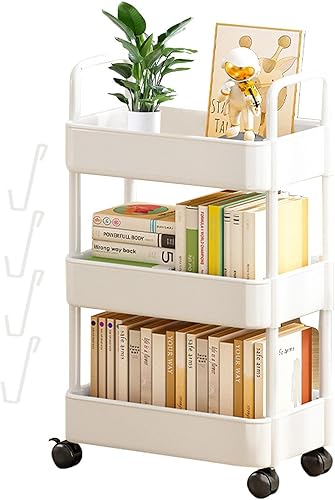 Elinrat Chariot Utilitaire sur Roues - Chariot de Rangement - Support de Rangement sur Roues, Support de Stockage de Livres Multicouche sur Pied, Support de Stockage Roulant pour collations et Jouets