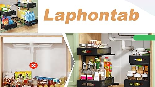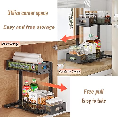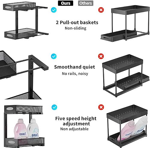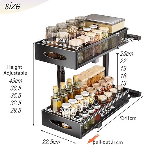 Laphontab Rangement Sous Evier En métal, Organisateur Évier à 2 Étages avec Tiroir Coulissant pour Cuisine, Salle de Bain, Réglable en hauteur- Noir. (1 Pièce)