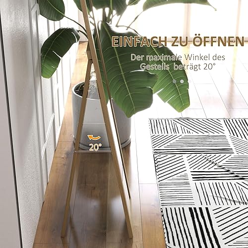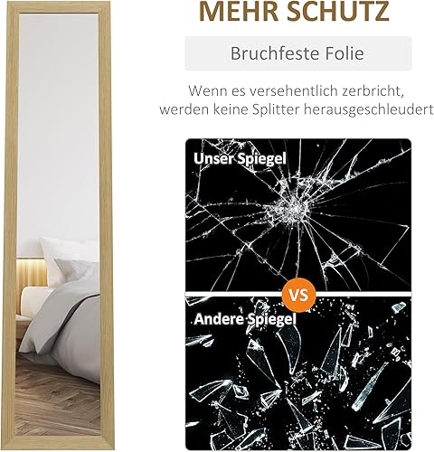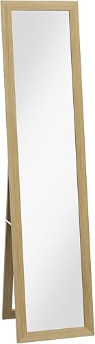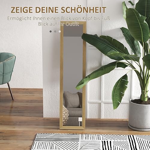 HOMCOM Miroir sur Pied, Miroir intégral avec Support, Miroir Mural indépendant, Miroir d'habillage, Miroir de vestiaire pour Chambre à Coucher, Couloir, alu, chêne, 37 x 157 cm