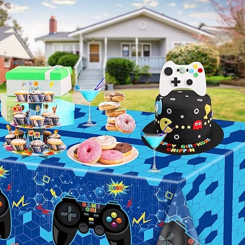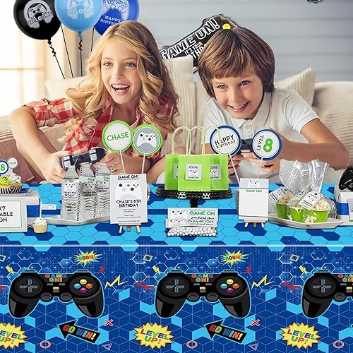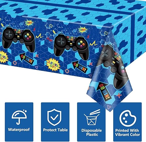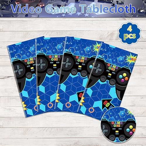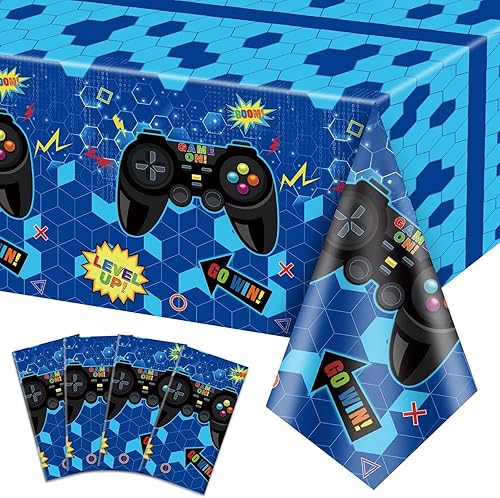 Lot De 4 Nappes Jetables en Plastique pour Jeux Vidéo - 130 X 270 Cm - Bleu - Décorations De Fête d'anniversaire pour Garçons Et Enfants