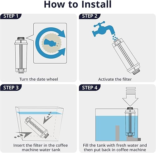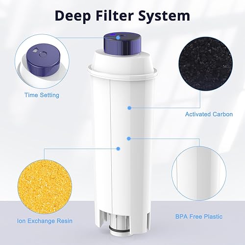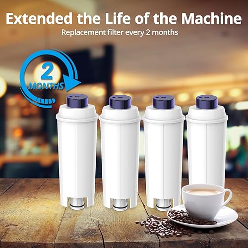 4PCS Filtre à Eau pour Machine à Café Delonghi Magnifica s, Système de Filtration Double Action avec Charbon Actif et Résine Échangeuse d'Ions, Compatible Machines à Café ESAM