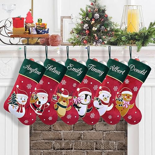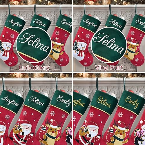 Duosheng & Elegant Chaussettes de Noël Personnalisées Snowman cheminée Chaussettes de Noël Réunion de Famille Rouge Vert décoration de Noël 1 Pièce